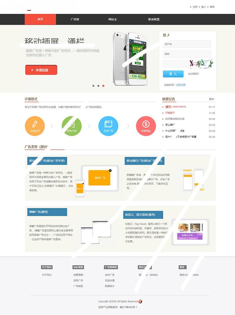 PHP开发的广告联盟系统,支持网站主和广告商两种角色