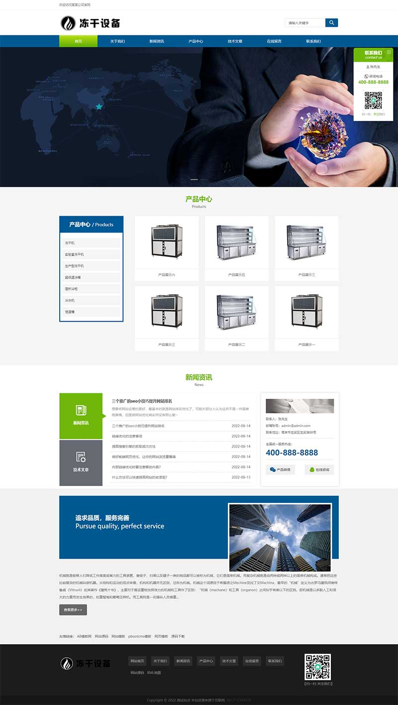 源码库 » 冻干机冷冻设备冷冻机械网站源码pbootcms模板