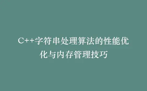 C++字符串处理算法的性能优化与内存管理技巧:从基础到实战的深度解析