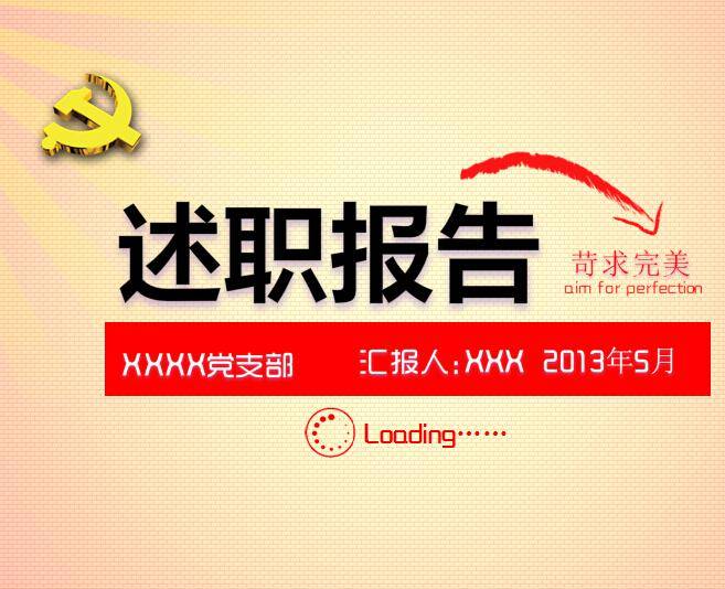 PPT描述: 党支部述职报告ppt模板,述职报告ppt模板,述职报告,工作包公,动态搜索,动态光芒,党徽动态,红色箭头,党工作报告. 声明:本站所有文章,如无特殊说明或标注,均为本站原创发布。任何个人或组织,在未征得本站同意时,禁止复制、盗用、采集、发布本站内容到任何网站、书籍等各类媒体平台。如若本站内容侵犯了原著者的合法权益,可联系我们进行处理。