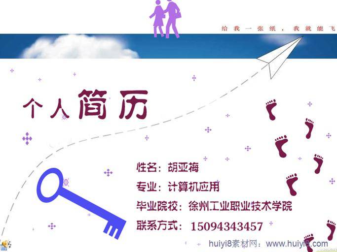 大学生个人求职简历策划ppt模板,求职简历,个人简历,求职,校园,红色脚印,纸飞机,蓝天白云.