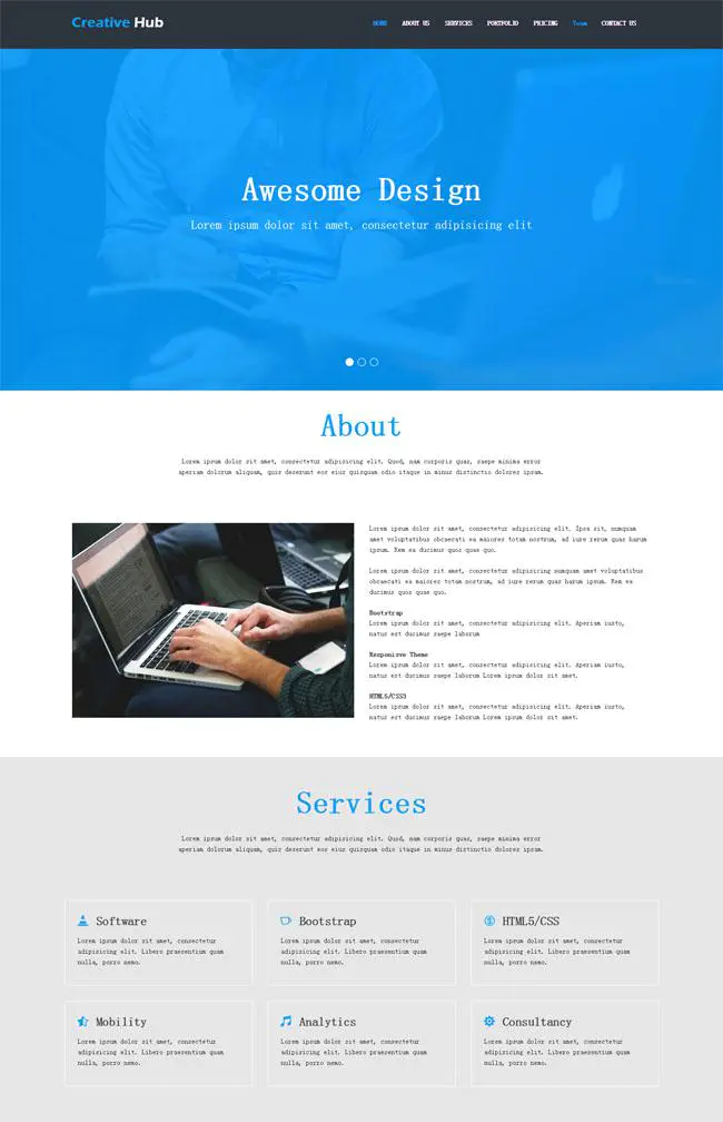 蓝色扁平公司静态模板下载是一款大气扁平风格设计公司网页模板下载。