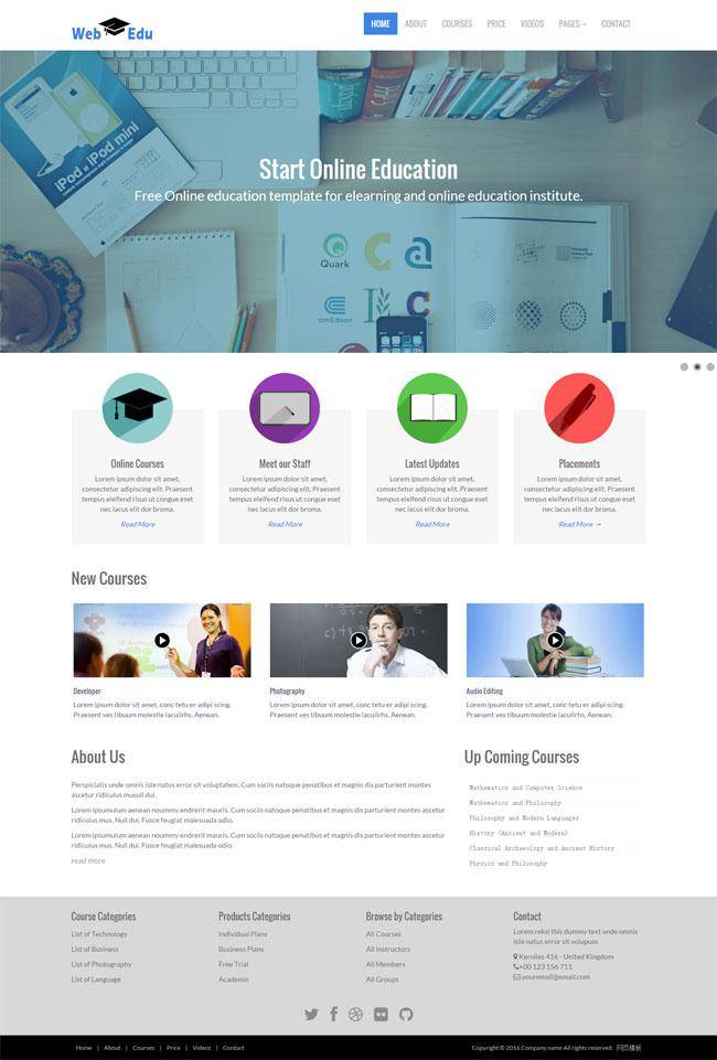 电脑教育培训机构网站模板,里面总共7个页面,适合教育相关HTML5网站模板下载。