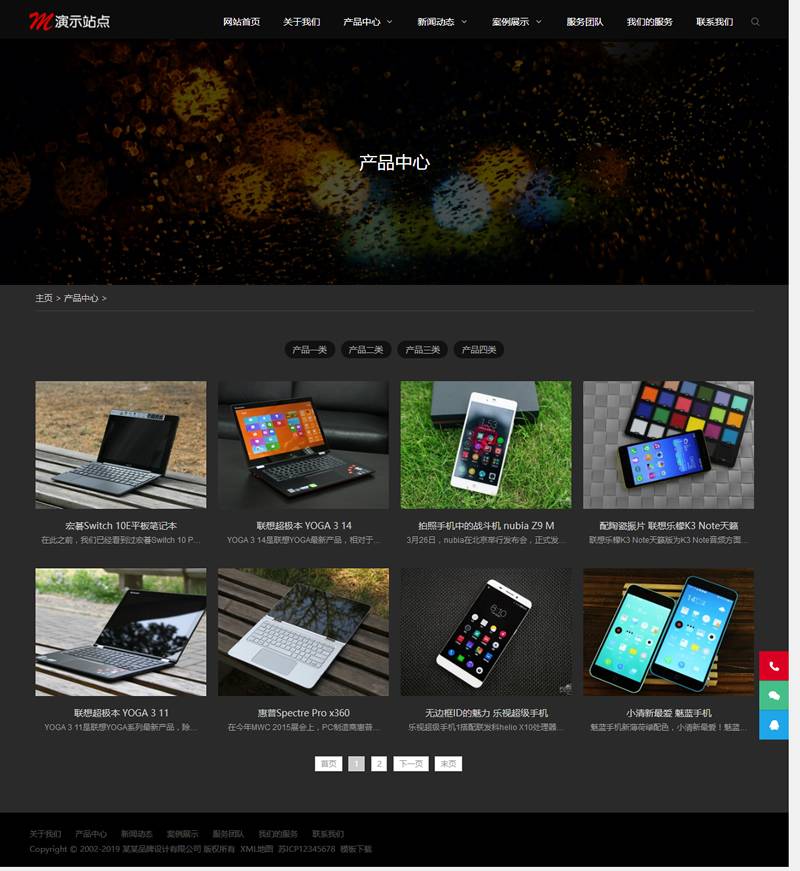 2、效果相当的炫酷,相当简洁大气高端,模板简单,全部已数据调用,只需后台修改栏目名称即可